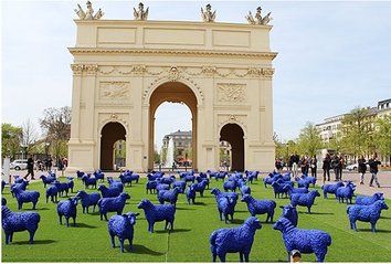 Die Blauschafe von Künstler Rainer Bonk werden zum Teil in Behinderten-Werkstätten hergestellt. Seit 2009 wird im Rahmen einer Ausstellungstour Station in vielen europäischen und internationalen Städten gemacht. Die Herde Friedensschafe war bereits in Metropolen wie Venedig, Berlin oder Wien zu Gast.
